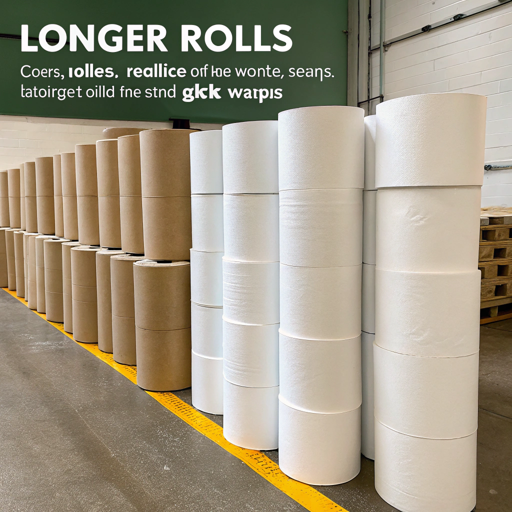 Longer rolls mean fewer cores. Less glue is used. Fewer plastic wraps or paper bands are needed. Over large volumes, this adds up.